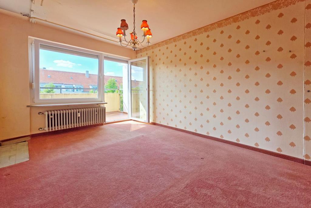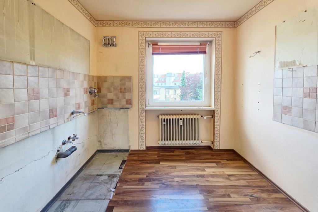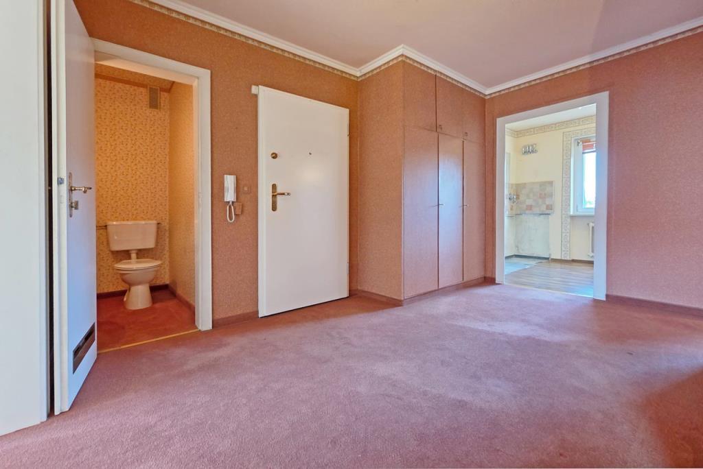 Die Wohnung befindet sich in einem renovierungsbedürftigen Zustand, bietet jedoch viel Potenzial für individuelle Gestaltungsideen und persönliche Wohnträume.