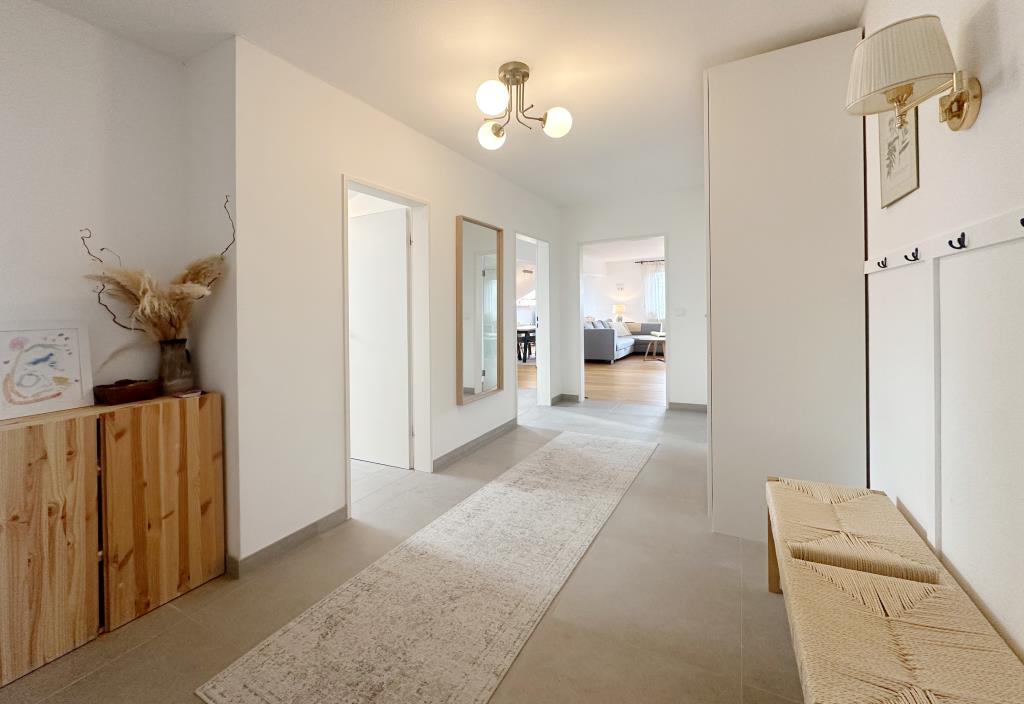 Eine großzügige Diele, 3 weitere Zimmer, ein Badezimmer mit kleinem Waschraum und ein zusätzliches Gäste-WC schaffen zusätzlichen Komfort. Dad große Schlafzimmer umfasst zudem ein maßangefertigten Kleiderschrank.