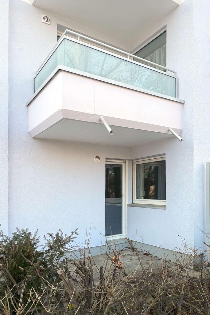 das Gebäude bis vor die Terrasse des Wohnzimmers erstreckt. Die Gartenpflege
