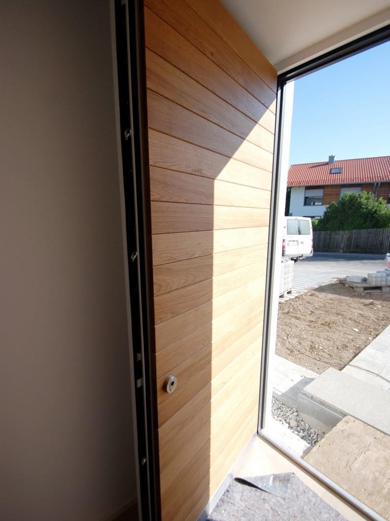 Material Innenausbau: Vollholzparkett, Feinstein, Holz-Aluminium-Fenster, Stahlbeton, Edelstahl, Glattputz