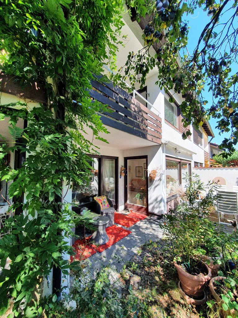 - liebevoll angelegte Südterrasse mit Brunnen und kleinem Teich