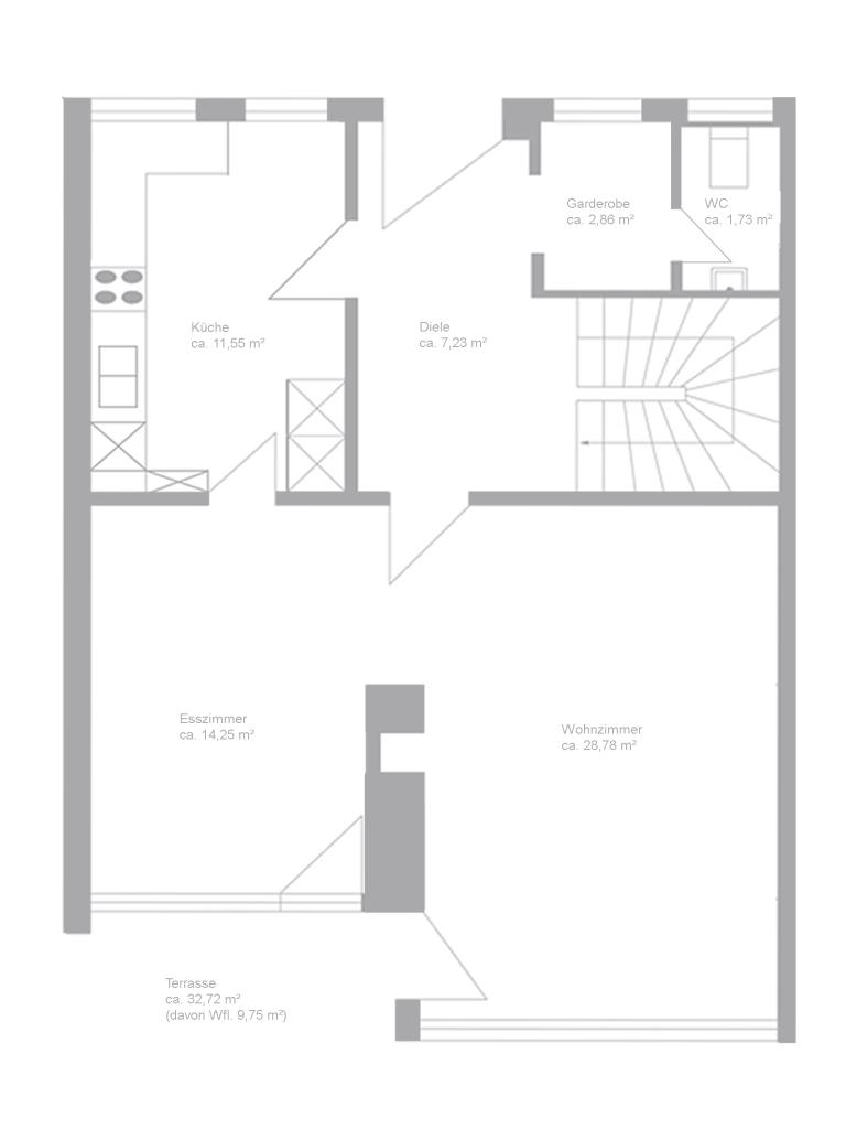 Abgerundet wird das perfekte Wohngefühl der Wohnebene mit großen Fensterflächen und einer ansprechenden Grundstücksgröße von 472 m² mit einer Ausrichtung in den Südgarten, der zu gemütlichen Momenten im Freien einlädt.