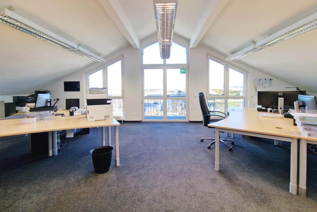 Die hier angebotene Gewerbeeinheit mit Alpenblickpanorama befindet sich im Dachgeschoss, welche über das Treppenhaus oder durch einen Personenaufzug zu erreichen ist.
