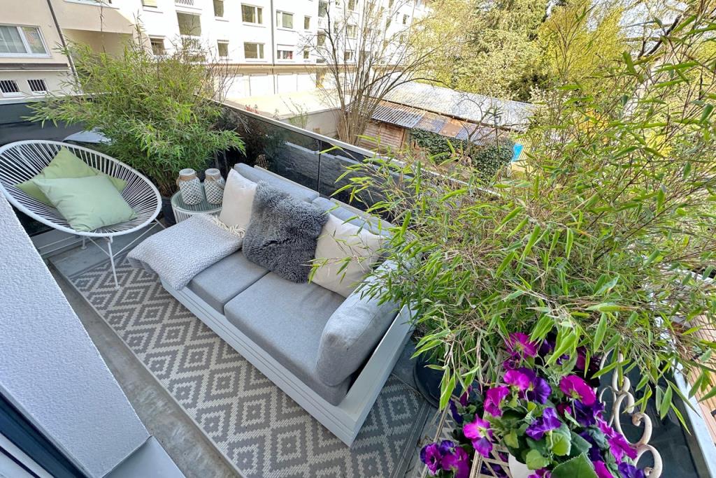Ein großer Balkon, welcher in den Innenhof ausgerichtet ist, lädt zu warmen Sommerabenden ein. Zusätzlich verfügt der Balkon über eine Steckdose, ein Außenlicht und eine moderne dunkle Glasverkleidung,