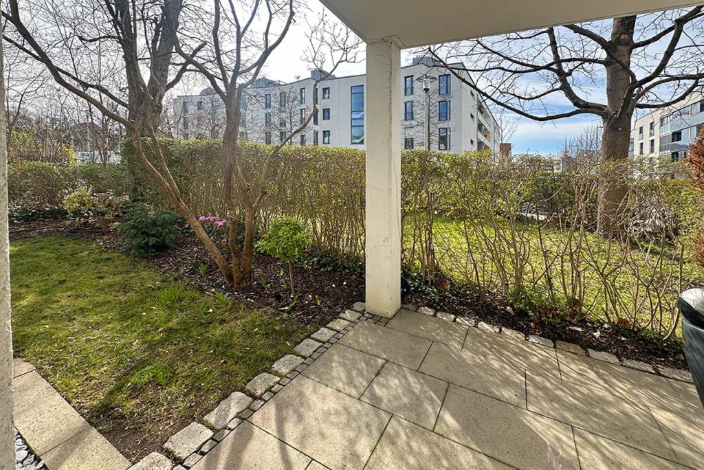 Der Garten grenzt idyllisch an den gemeinschaftlichen Innenhof mit einer Größe von ca. 500 m² und verfügt über einen direkten Zugang.