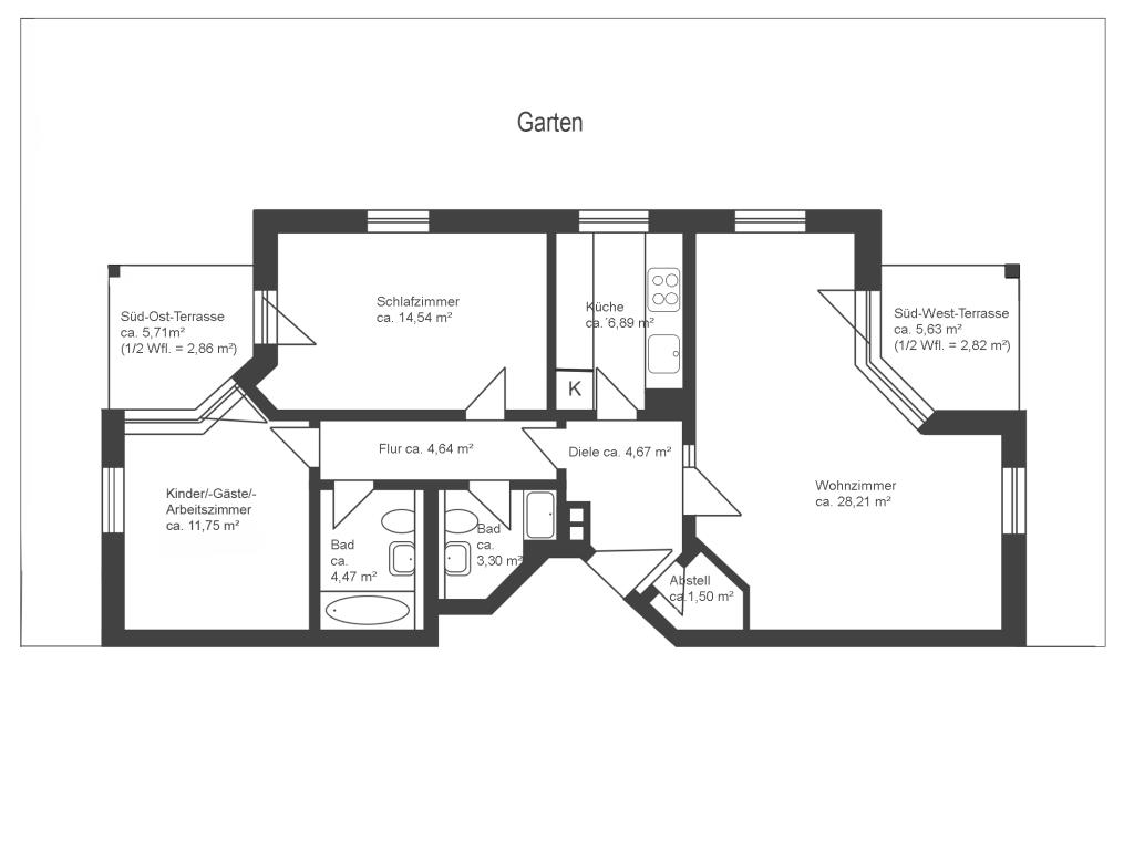 - ca. 120 m² großer Süd-Garten