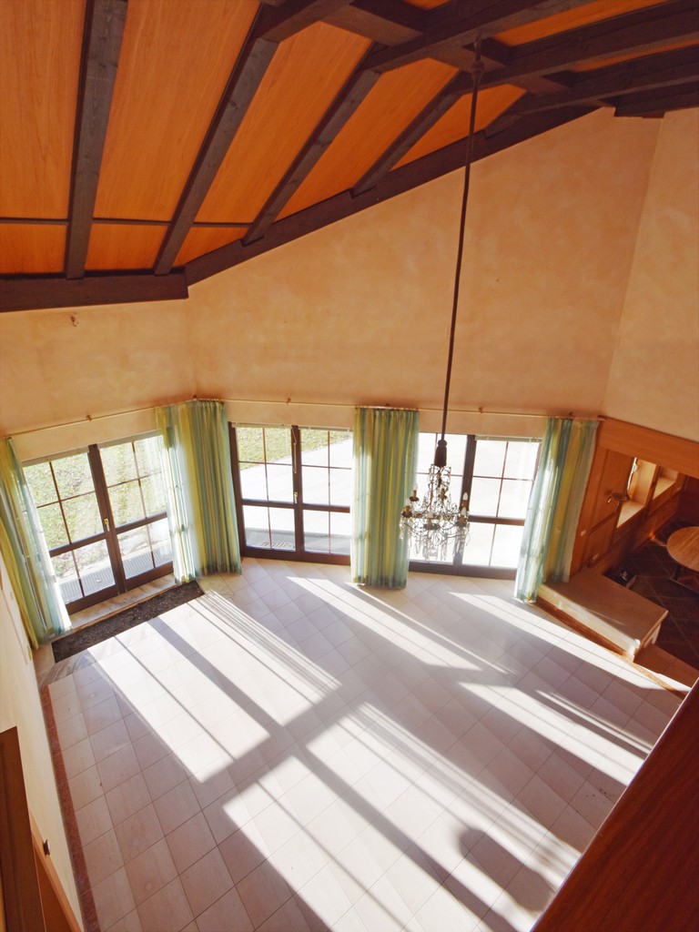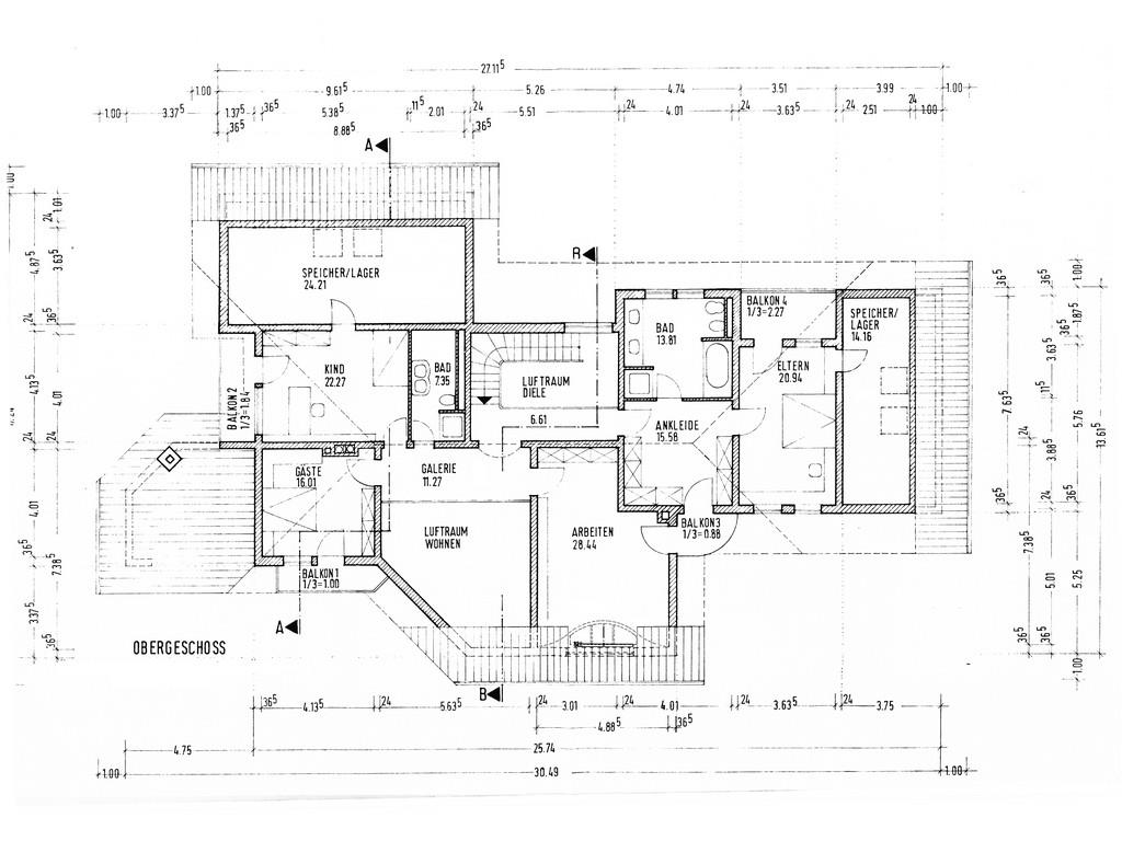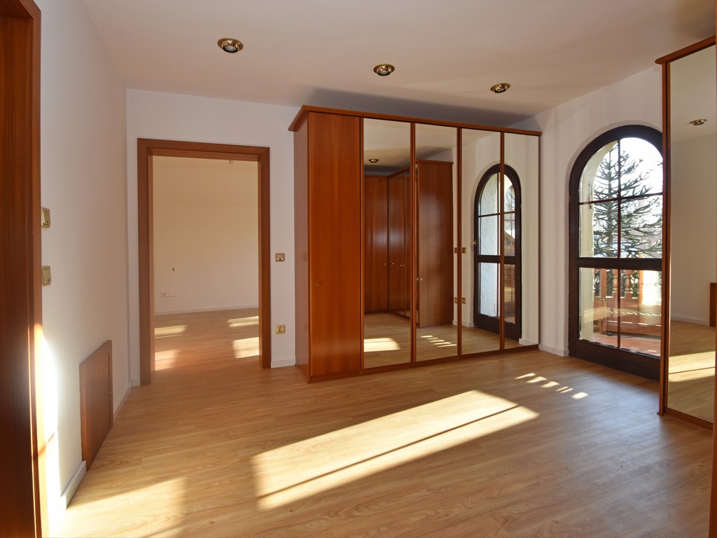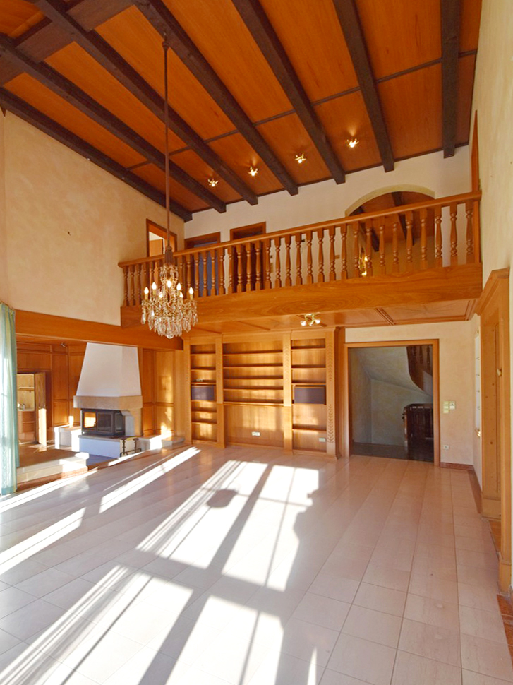 Im Obergeschoss befinden sich insgesamt vier weitere Zimmer. Das Master-Schlafzimmer mit allein mehr als 50 m² Fläche verfügt über ein eigenes Ankleidezimmer, ein Tageslichtbad en Suite, zwei Balkone sowie Speicherplatz. In die drei weiteren Zimmer des Obergeschosses mit jeweils eigenem Balkon gelangen Sie über eine offen konzipierte Galerie mit viel Luftraum zum Wohnzimmer im Erdgeschoss. Des Weiteren verfügt das Obergeschoss über ein weiteres Badezimmer und Speicherplatz.