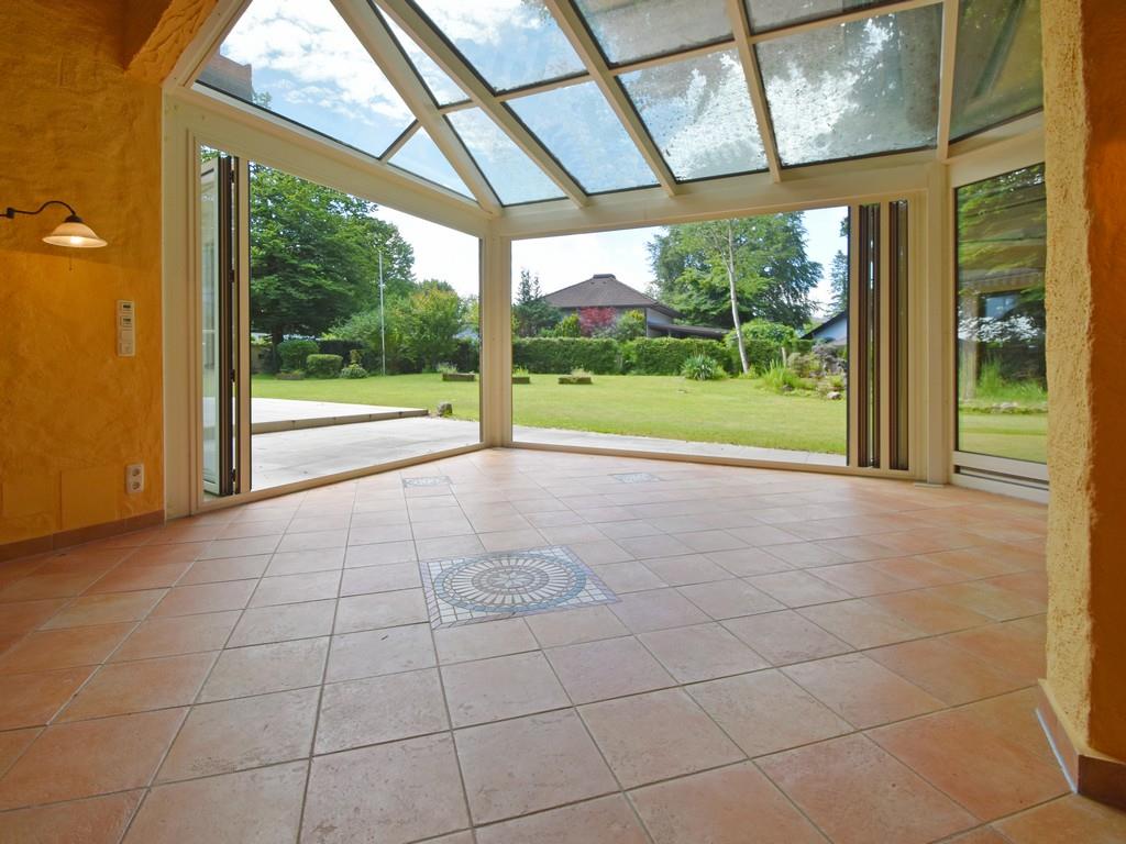 Im Anschluss des Kaminzimmers befindet sich weiterhin ein lichtdurchfluteter Wintergarten, welcher über einen eigenen zusätzlichen Kamin und eine Küchenzeile verfügt.