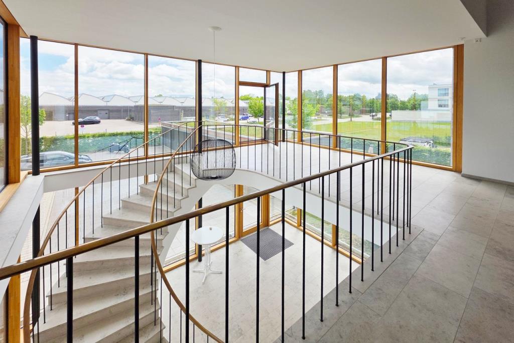 Die Einheit kann durch den eindrucksvollen und lichtdurchfluteten Haupteingang / Foyer mit geschwungener Treppe (ideal für Kundenbesuch) oder durch einen separaten Seiteneingang betreten werden.
