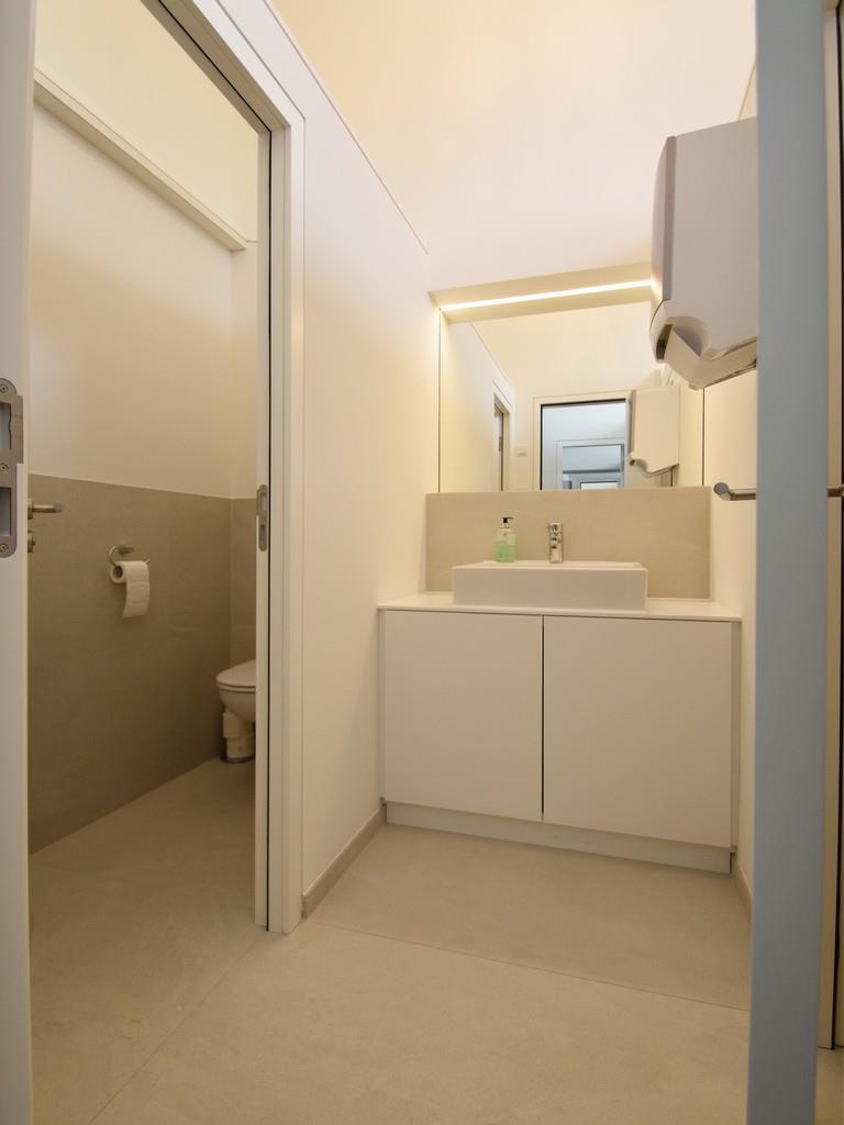 Weiterhin besteht die Möglichkeit, im Foyer Besprechungstermine abzuhalten. Dazu wird vom Vermieter ein Besprechungstisch zur Verfügung gestellt. Zur Einheit gehört noch eine gemeinschaftliche Garderobe und zwei getrennte Toilettenräume (Damen und Herren WC).