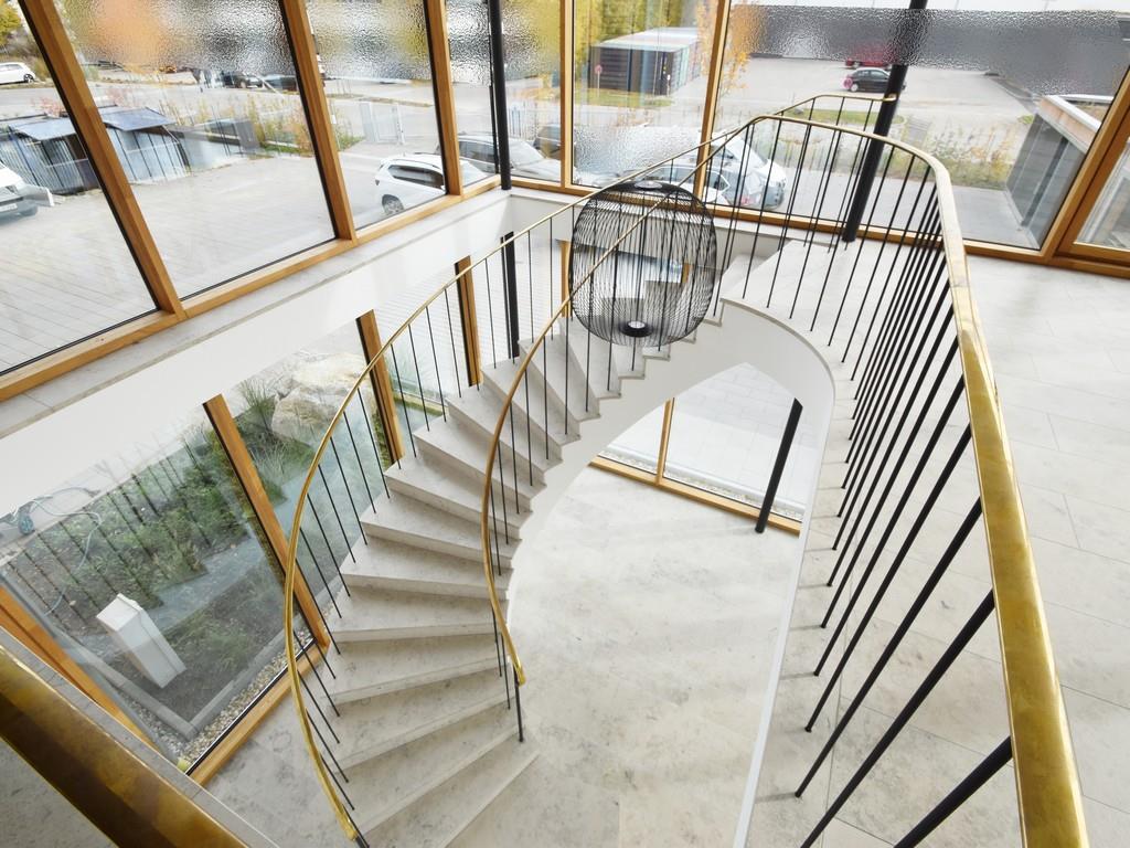 Die Einheit kann durch den eindrucksvollen und lichtdurchfluteten Haupteingang / Foyer mit geschwungener Treppe (ideal für Kundenbesuch) oder durch einen separaten Seiteneingang betreten werden.