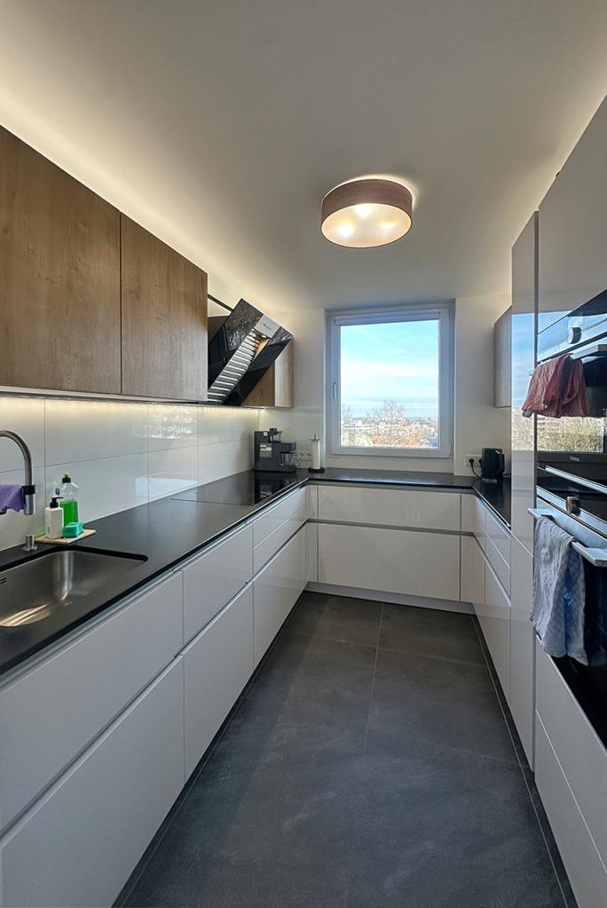 Die gesamte Wohnung wurde hochwertig modernisiert. Die Böden wurden mit geöltem Dielen Eichenparkett verlegt, das Badezimmer und die Küche mit modernem Feinsteinzeug. Zudem besitzt das Badezimmer hochwertige Marken Sanitärgegenstände, eine Bosch Waschmaschine, eine begehbare Regendusche, einen Spiegelschrank sowie ein Bidet.