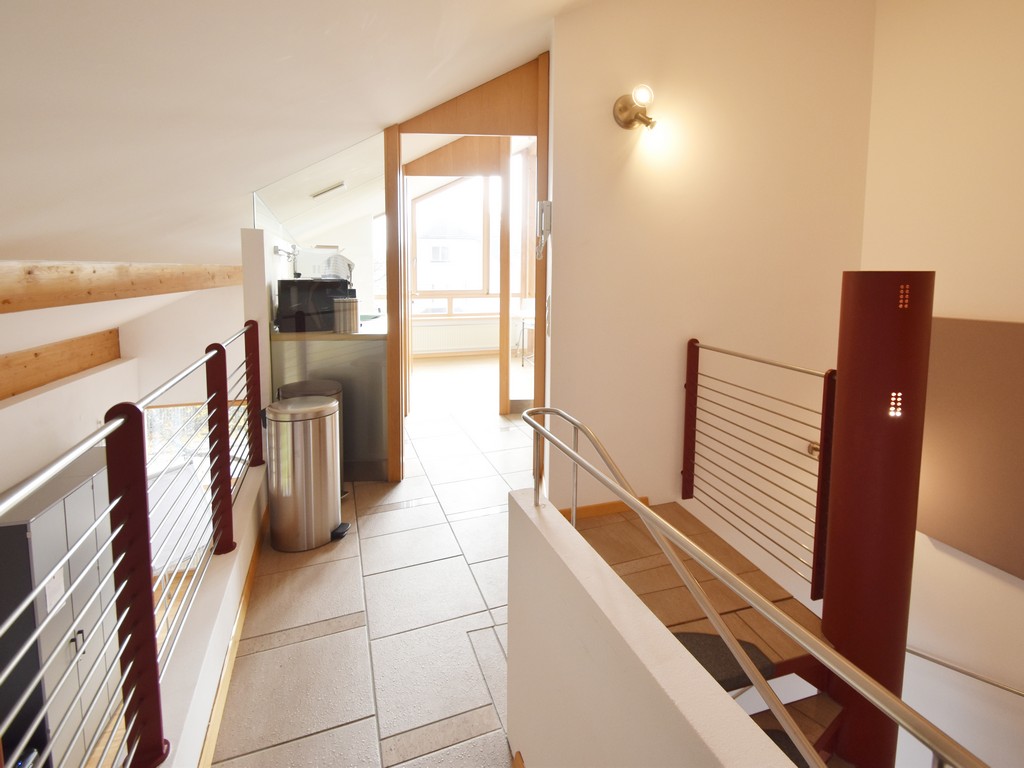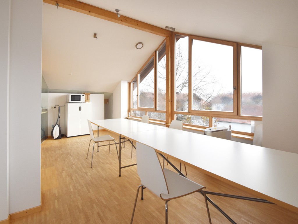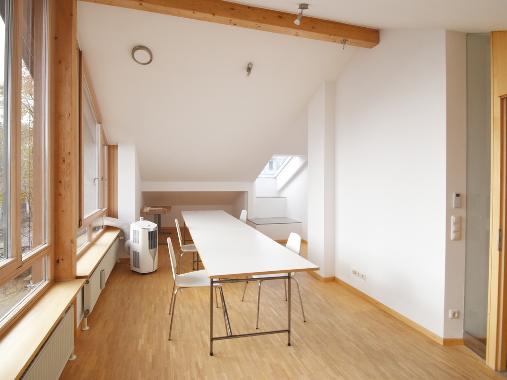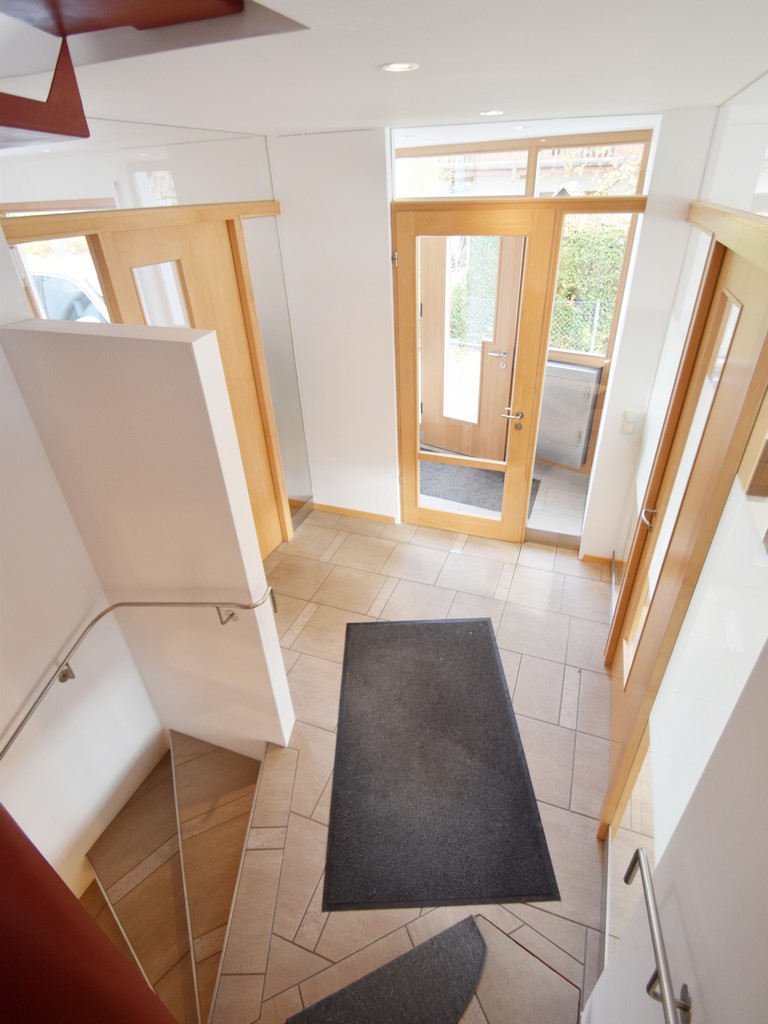Zunächst war ein modernes repräsentatives Architekturbüro geplant. Entsprechend ausgewählt ist auch die Detailgestaltung. Die Einheit ist jedoch ebenso und in vollem Umfang als Wohnung konzipiert oder in gemischter Nutzung, Wohnung mit Büro. Im Erdgeschoß z.B. Büro und Wohnen in den Obergeschossen oder Büro im Erd- und Obergeschoß und Wohnen nur im Dachgeschoß. Für alle diese Möglichkeiten sind sanitäre Vorinstallationen vorhanden.